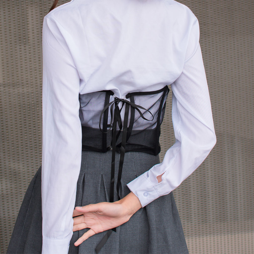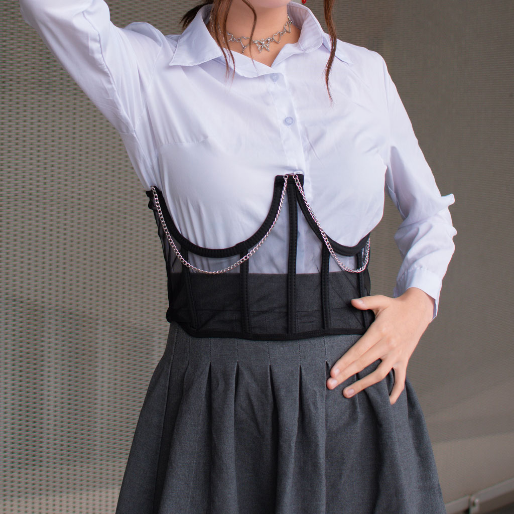Diseñado con varillas de soporte que estilizan y definen la figura, este corset asegura un ajuste cómodo y favorecedor. El color negro y la transparencia lo convierten en una pieza versátil que complementa perfectamente cualquier conjunto de lencería o atuendo especial. Perfecto para ocasiones especiales, este corset añade un toque de elegancia y sensualidad que realza la confianza y estilo personal.